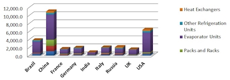 In Brazil, the refrigeration market is characterized by the presence of many companies supplying different parts and components. The total market size, including compressors, condensing units, packs and racks, heat exchangers and other refrigeration units is estimated at US$ 3.79 billion in 2012.