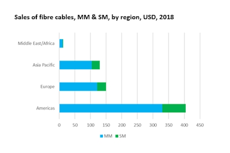 2018年,局域网(LAN)市场也表现良好,增长近4%。铜产品,尤其是铜缆,增长主要受超六类(Cat 6A)铜缆用量的增加、加拿大Plenum阻燃铜缆用量的增加所拉动。政策方面,欧盟建筑产品法规(Construction Products Regulation,缩写CPR)的实施也在推动市场的发展,该法规推荐使用加强型阻燃线缆。