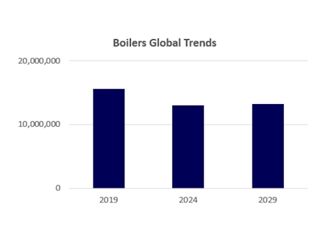According to our recently released report on world heating there are clear regional trends shaping residential boiler preferences. In North America and Europe, the shift towards electrification (heat pumps) and away from gas is evident, likely driven by increasing environmental consciousness, supportive government policies promoting renewable energy, and advancements in electric heating technologies. However, this does not translate into significantly more sales for electric boilers, as their growth remains just under 3% in Europe. Notably, the decline in gas boiler usage in both regions is often outpacing the rise in electric boilers, suggesting that they are not seen as a replacement for gas boilers but more as a backup in bi-valent, often all electric systems.