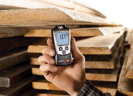 The Testo 606-1 and 606-2 are pocket sized instruments designed to measure the moisture content of wood with stored characteristics curves for beech, spruce, larch, oak, pine, and maple along with additional characteristic curves for cement screed, concrete, plaster, anhydrite screed, cement mortar, lime mortar and brick. In addition to material moisture, the Testo 606-2 also measures air moisture (humidity / dewpoint) and temperature via integral sensors.