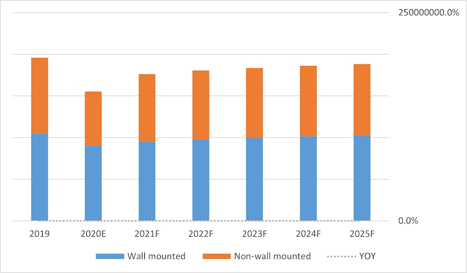 In 2020, affected by the COVID-19 pandemic, South Korea's economy declined by 1%. The drop in consumer demand, and a cooler than usual summer, resulted in a sharp decline in air conditioning sales. Even though transaction levels in residential and office buildings increased significantly, sales of air-conditioning did not see the same trend. However, the market is expected to see a recovery in 2021.