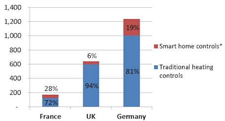 The proportion of heating controls that is “smart” i.e. part of a smart home or a HEMS i.e. part of centralised multi-functional control is already significant in Germany and other parts of Europe and is set to grow further.