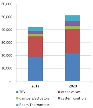 Radiator valves: TRV (non-electric), TRV (programmable), other radiator valves (MRV)