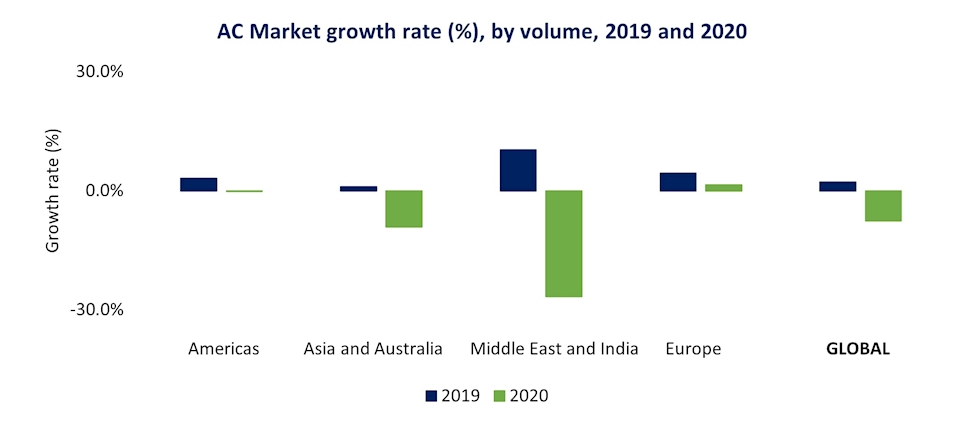 In Saudi Arabia and UAE commercial products experienced a major business disruption caused by the Covid-19 outbreak and lack of larger construction projects. In India sales of all AC products were down in 2020 due to major business disruption caused by the pandemic and with the latest surge in infections, recovery is likely to be delayed.